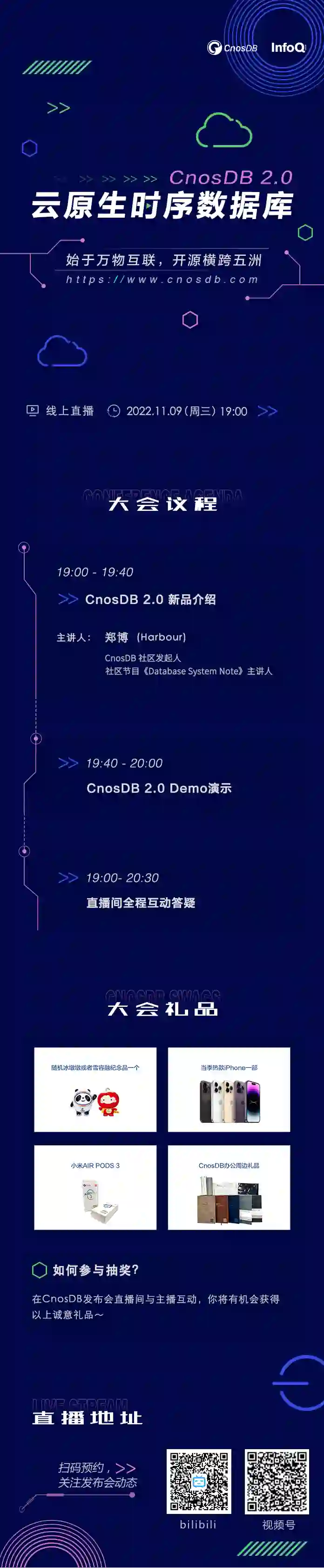 CnosDB 社区发起人 Harbour 还将知无不言分享 CnosDB 的整体设计思路,内容涵盖: