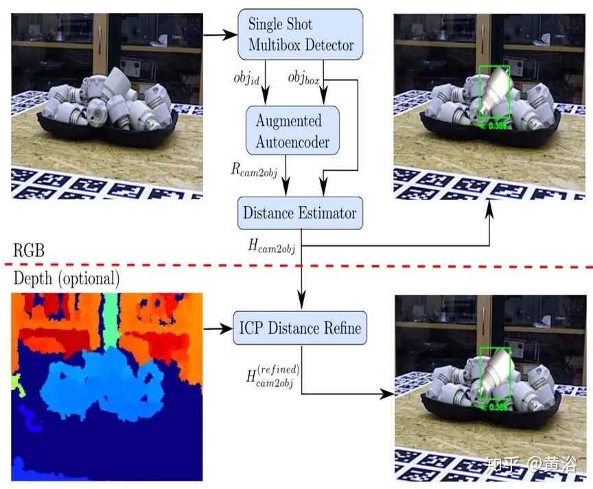 尽管近来的几种技术已将深度相机用于目标姿态估计,但是这种相机在帧速率、视场、分辨率和深度范围方面具有局限性,这使得很难检测小、薄、透明或快速移动的物体。从图像估计目标6D姿势是各种应用(例如机器人操纵和虚拟现实)中的重要问题。虽然将图像直接回归到目标姿态的准确性有限,但是将目标的渲染图像与输入图像进行匹配可以产生准确的结果。