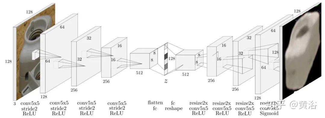 下图是体系结构的高级概览:1)该建模网络获得图像和掩码,并预测每个输入视图的特征容量;然后,通过融合模块将预测的特征容量融合到单个规范的潜在目标中。2)给定潜在目标,渲染网络会为任何一个输出相机生成深度图和掩码。
