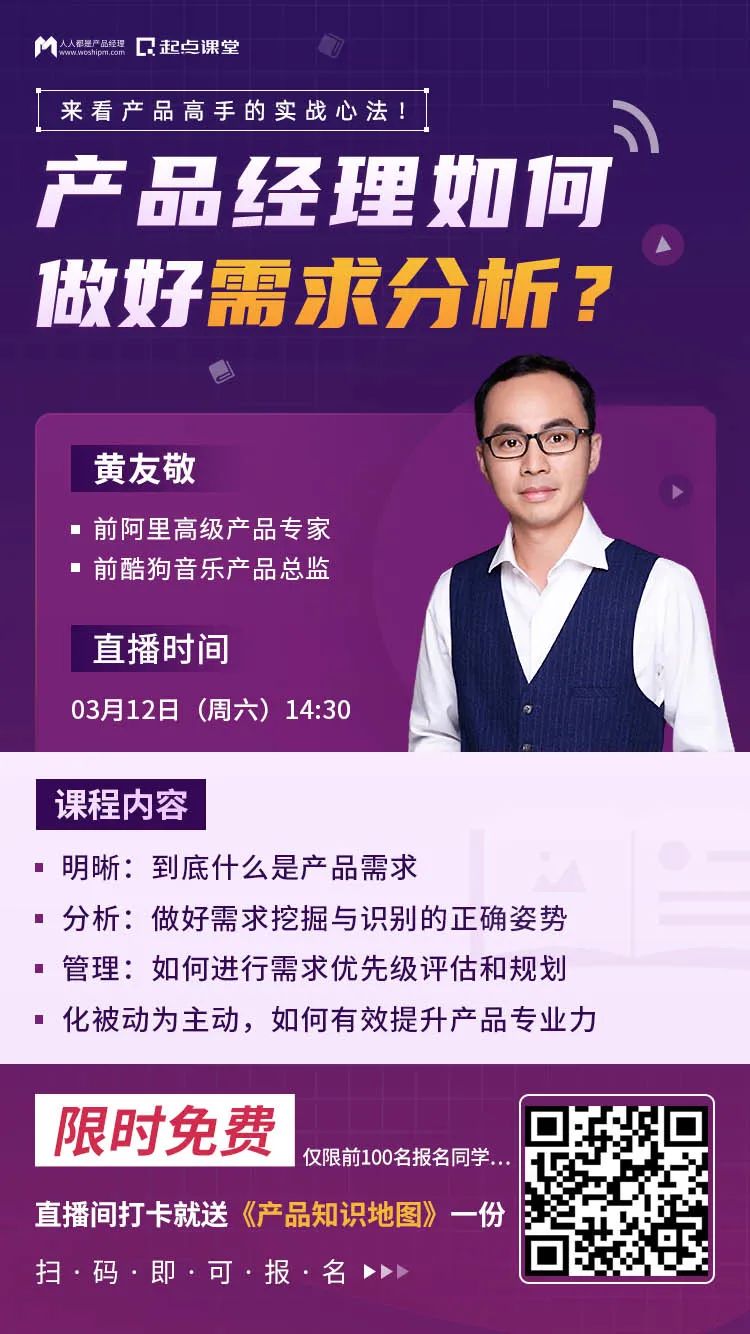 这里给大家带来了一节直播课:产品经理如何做好需求分析?来看产品高手的实战心法!
