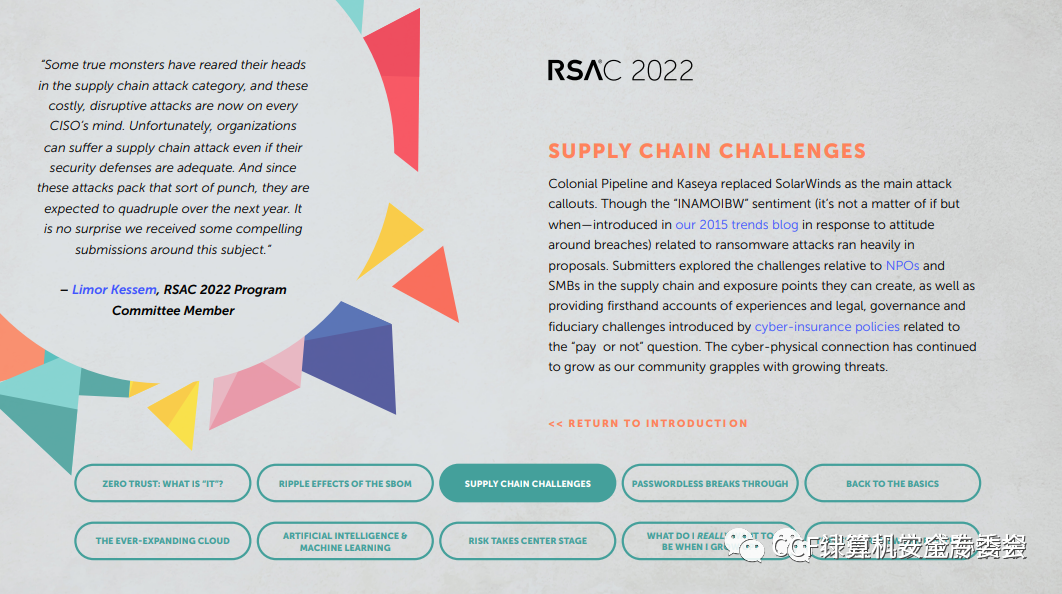 2022年的RSA大会已经正式开幕,本次大会议程为期4天。每年RSA大会中的主题演讲和参展机构所涉安全领域的安全热词都会成为大家热议的焦点。在对早期提交的数千份报告进行研判和筛选后,RSA发布其预测的2022年网络安全行业十大安全趋势,并为我们带来超过500个议题。