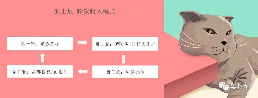 必须要强调的是:迪士尼的“轮次收入模式”是有先后顺序的,必须先有爆款内容,以超级内容为引擎,才有后续的三个变现行为。也就是我们之前提到的——IP是先有内容,才有产业。