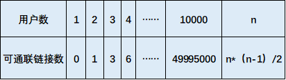 我们把每个用户和另一个用户的关联叫做一条“可通联链接”,那么,一个APP的用户数和可通联链接数的关系如下: