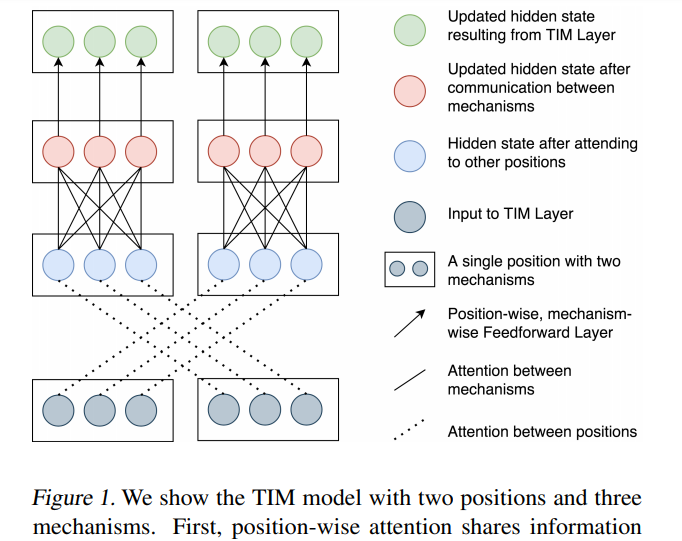 ,可以激励上述分割而成的机制随着时间步的推移更加专门化,并因而更加独立。研究者在大型 BERT 模型、Image Transformer 和语音增强上研究了 TIM,结果发现这种新的 Transformer 层可以实现语义上有意义的专业化和性能的提升。