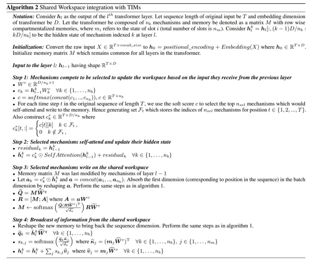 利用 TIM (Transformers with Independent Mechanism) 的共享工作区集成算法。