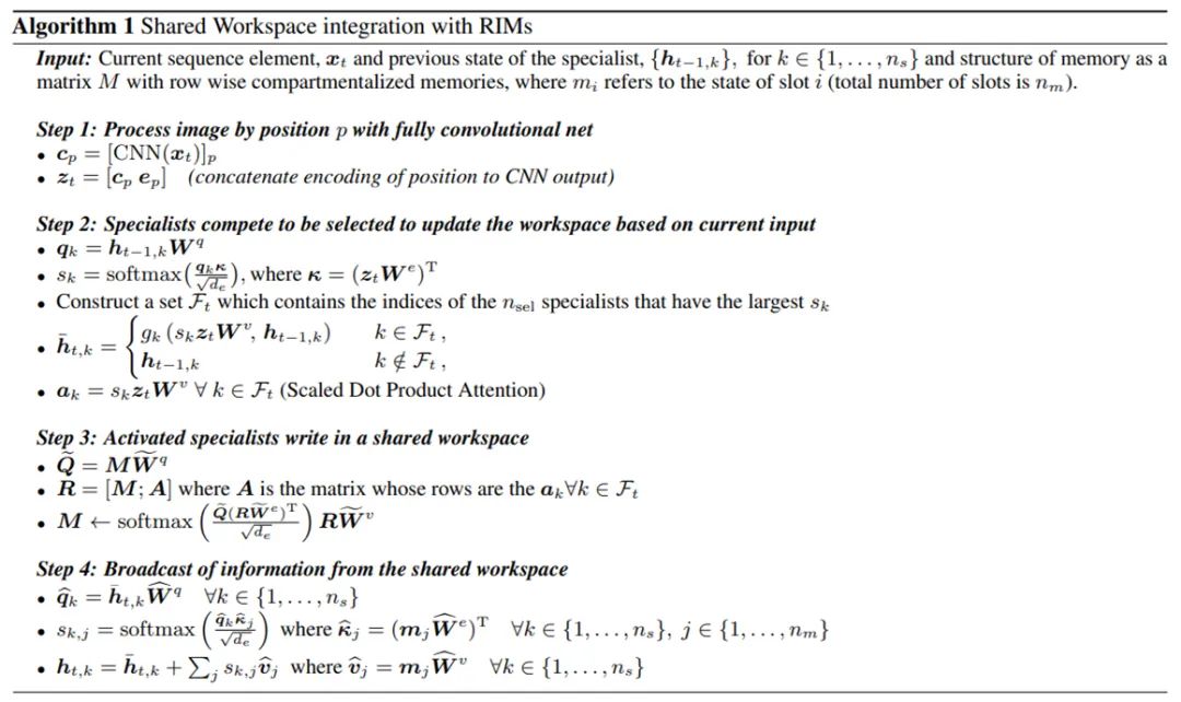 使用共享工作区在 RIM (Recurrent Independent Mechamism)、Transformer 和 Universal Transformer (UT) 中创建全局一致性。