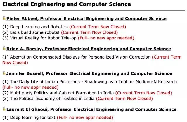 • 该计划旨在使伯克利大学的本科生更深入地参与大学的研究生活,在每个学期开始时开放申请。图⑦显示了EECS学院部分供本科生参与的项目。