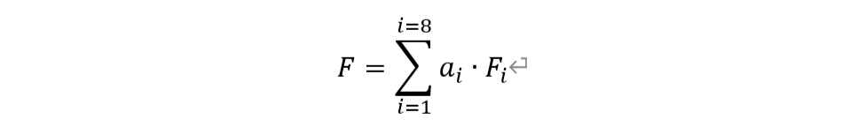 其中Fi就是房源评价雷达图里的8个指标,每个ai的值对应了每个指标的权重,并满足如下条件: