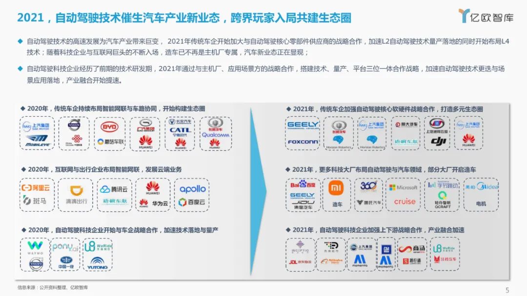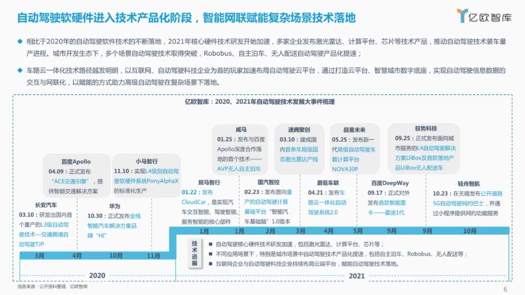 自动驾驶技术正推动中国人工智能、互联网、汽车产业、交通产业的融合与创新发展。回顾2021年,互联网、科技企业加速布局自动驾驶行业,产业各方的融合推动了其商业化落地进程。伴随着大量资本涌入,政策监管体系初步搭建,中国自动驾驶产业已然驶入快车道。