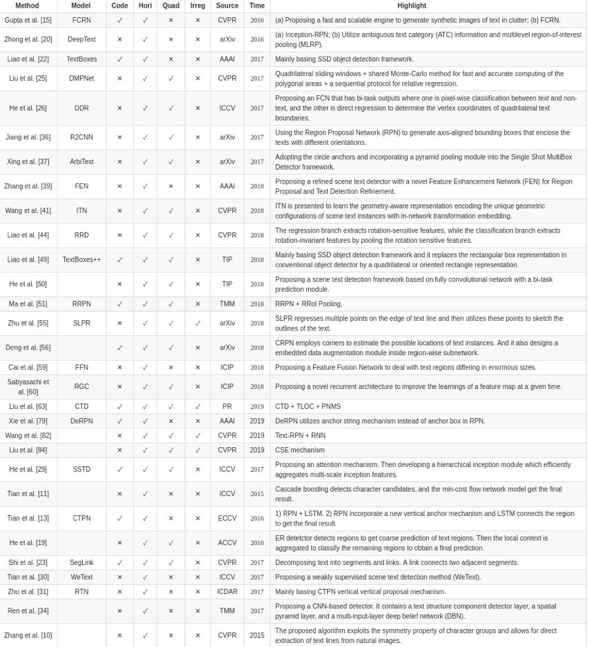 表格中Hori,Quad和Irreg分别代表水平文本,任意四边形文本以及不规则文本。