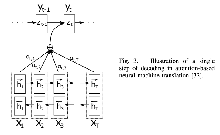 如上所属,attention的值不仅与annotation vector 有关,还与上一时刻解码器的隐状态有关。因此有: