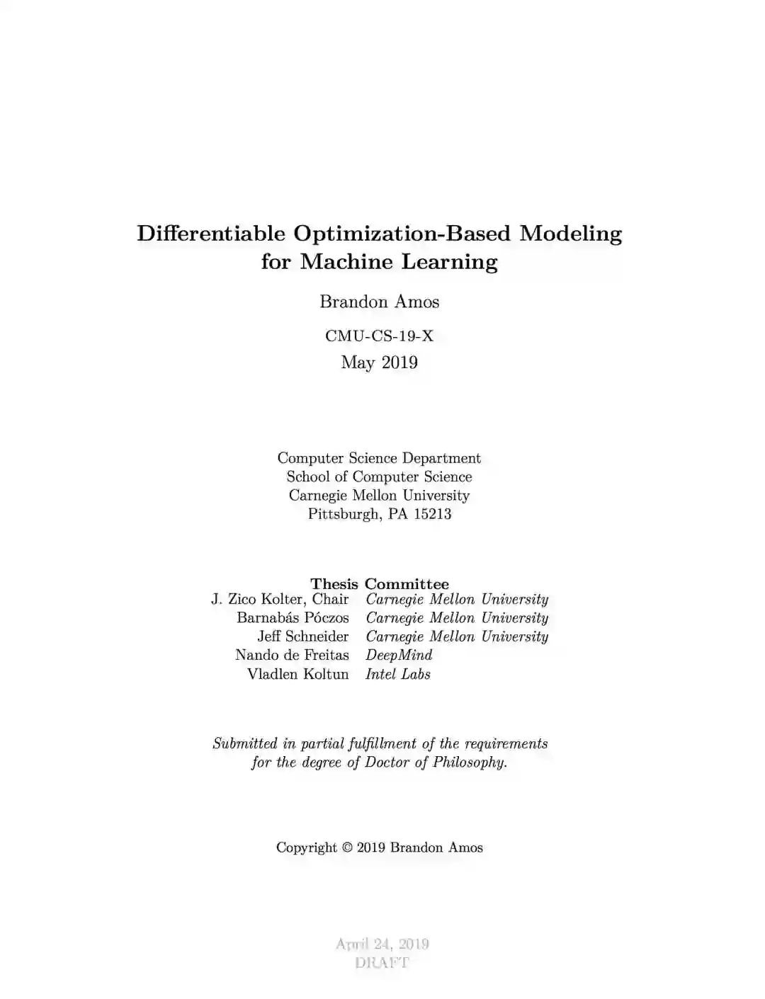 【导读】CMU大神博士生Brandon Amos,马上就要毕业了。博士期间,他在可微优化机器学习建模方向,发表了ICLR 一篇,ICML 三篇,NeurIPS 三篇,分析了可微优化机器学习建模的很多问题。近日,他将自己的博士论文也开放了出来,系统的讲述了可微优化机器学习建模的方方面面,相关方向的同学们,赶紧来看看吧。