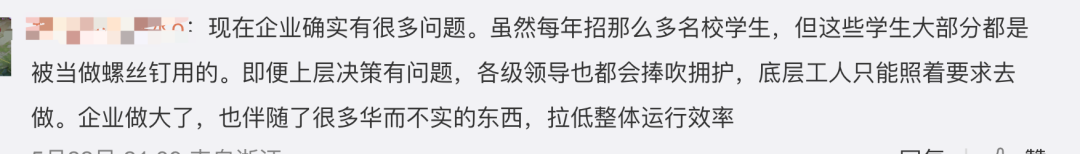 陈教授的观点得到了一些网友的支持,现在企业每年招那么多名校学生,大部分都是被当作螺丝钉用的:以上观点说出了同样选择的网友心声: