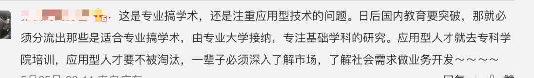 也有网友表示搞学术和搞应用的人才要分开,人尽其用: