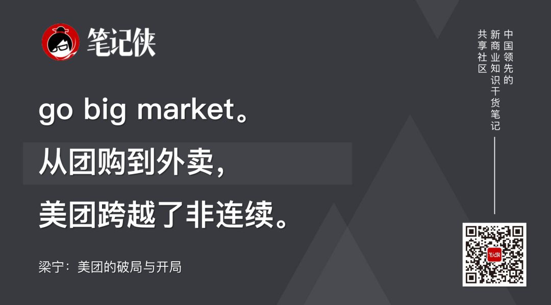 所以,go big market。从团购到外卖,美团跨越了非连续。