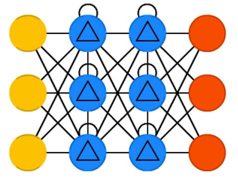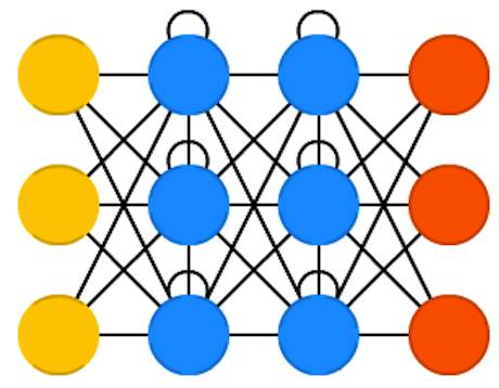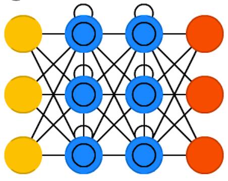 循环神经网络(RNN)是带有“时间结”的 FFNN。RNN 不是无状态的[1],它既存在层间的联系,也存在时间上的联系。输入到神经元的信息不仅由上一层传来,还来自前次传递时神经元自身的状态。这意味着输入和训练网络的顺序很关键:先输入“牛奶”、再输入“曲奇”,与先输入“曲奇”再输入“牛奶”会得到不同的结果。RNN 的一大问题是,使用不同的激励函数会各自造成梯度弥散或者爆炸,这样会让信息随时间变化而迅速流失,就像在极深 FFNN 中随深度增加而流失一样。乍一看好像不是什么大问题,因为这些信息只是权重而不是神经元的状态。