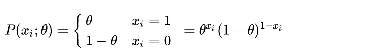 因为抛硬币可以表示为参数为θ的Bernoulli分布,即: