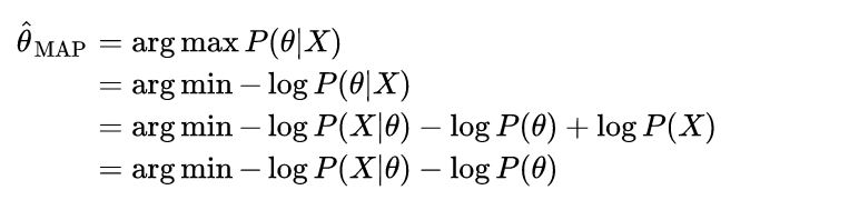 同样的,假设数据X1,X2,…,Xn是i.i.d.的一组抽样,X=(X1,X2,…,Xn) 。那么MAP对θ的估计方法可以如下推导: