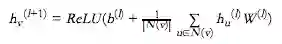"""将节点特征 hv 更新为 ReLU(Whv+b)."""