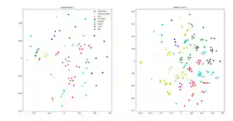顶部的两张小图分别可视化了做完 1 层和 2 层图卷积后的节点表示。不同颜色代表属于不同类别的图的节点。可以看到,经过训练后,属于同一类别的节点表示更加接近。并且,经过两层图卷积后这一聚类效果更明显。其原因是因为两层卷积后每个节点能接收到 2 度范围内的邻居信息。