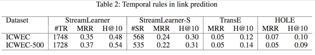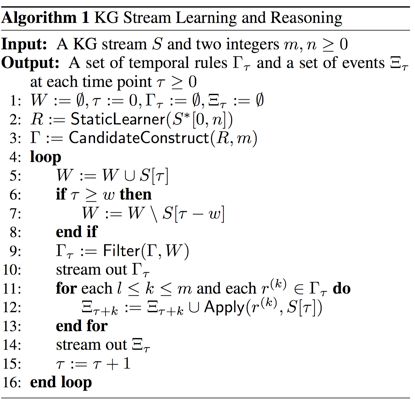 提出了针对KG流的规则挖掘算法,可以挖掘出带有时间维度的规则。