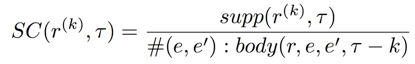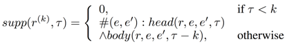 2. support degree of r(k) at time point τ,在时间点τ满足r(k)的实体对个数