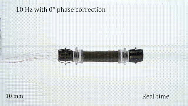 同时,团队的研究人员通过考虑软材料的独特特性(如粘弹性和动态共振)来分析机器人的动态特性,并相应地调整驱动电压的频率和相位,以优化机器人的运动速度。