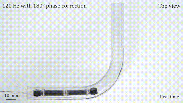 同时,它还能够在不同几何形状的管道(变径管、L 形管、S 形管、螺旋形管等)、不同的填充介质(空气、油等)和不同材质(玻璃、金属、碳纤维等)的管道中高速行进。