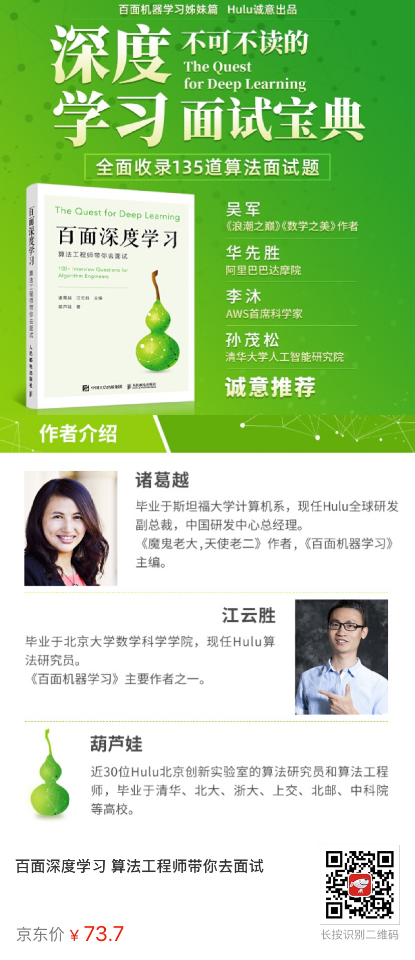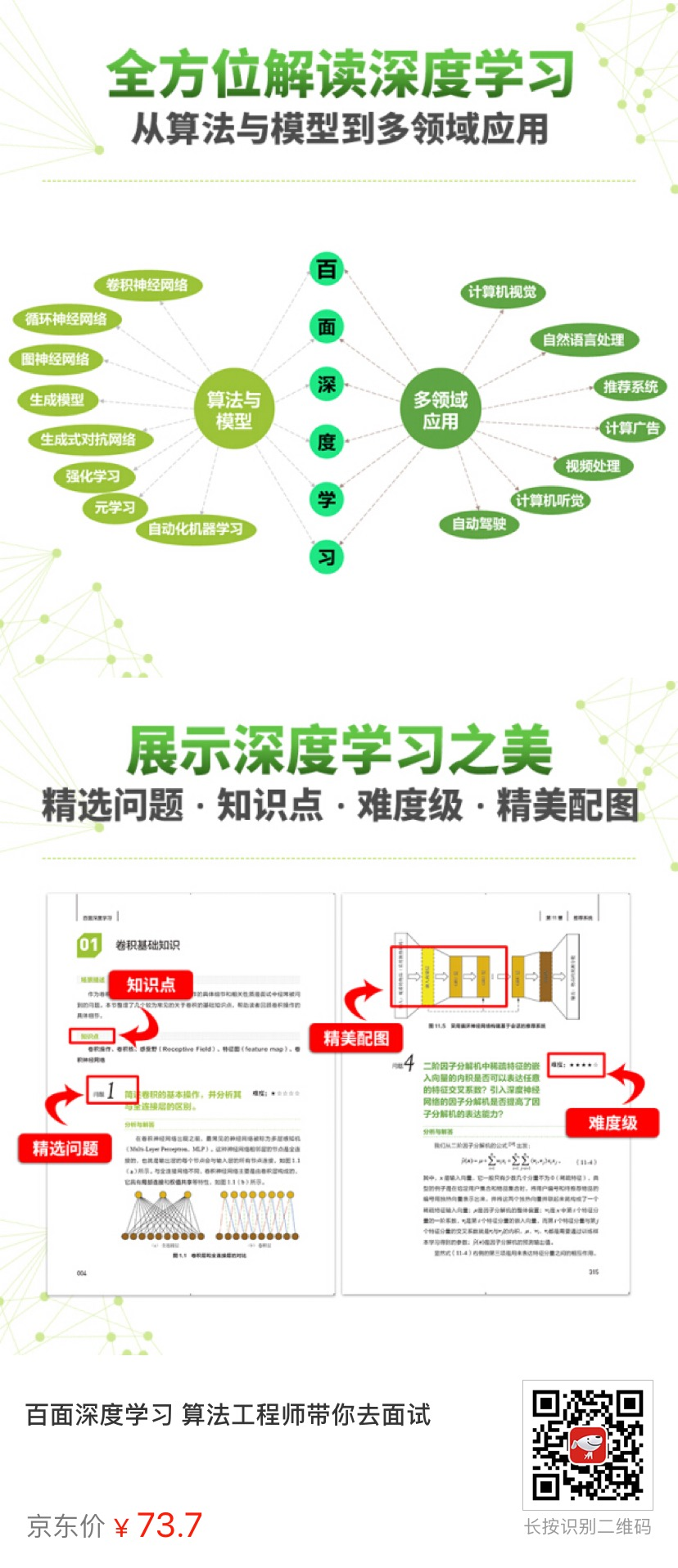 这就要求求职者不仅需要扎实的理论基础,还要有一定的工程实践能力。市面上算法类的书籍已有不少,但都普遍倾向于理论基础,面向实践应用的书籍,或者说面向算法岗面试的书籍并不多,而《百面深度学习》可以说是为算法岗面试而生。