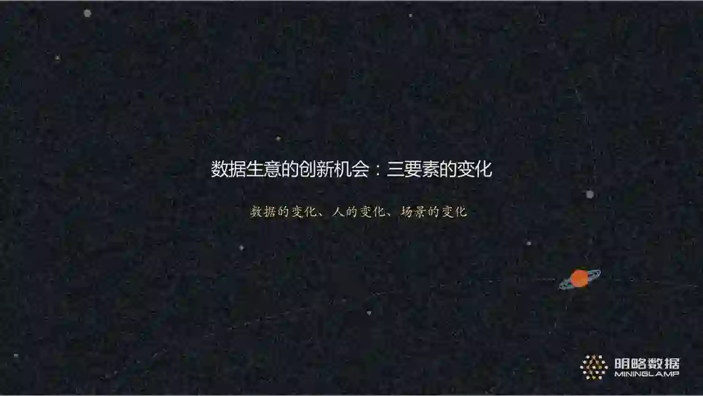 ▨ 然后数据商业化三要素,数据源、人、场景,它们的巨大的变化才有数据产品的诞生机会,数据品牌的诞生机会。