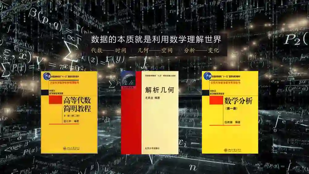 《高等代数》、《解析几何》和《数学分析》是数学系大一的三门教材课本。其中高等代数对于非数学系的同学,应该叫线性代数。解析几何我估计同学们上大学不一定学了,中学的时候应该都学过平面解析几何,大学数学系学的是三维、四维更高空间的几何,立体解析几何、空间解析几何。数学分析肯定大家都学过,非数学系学的叫高等数学,就是微积分。