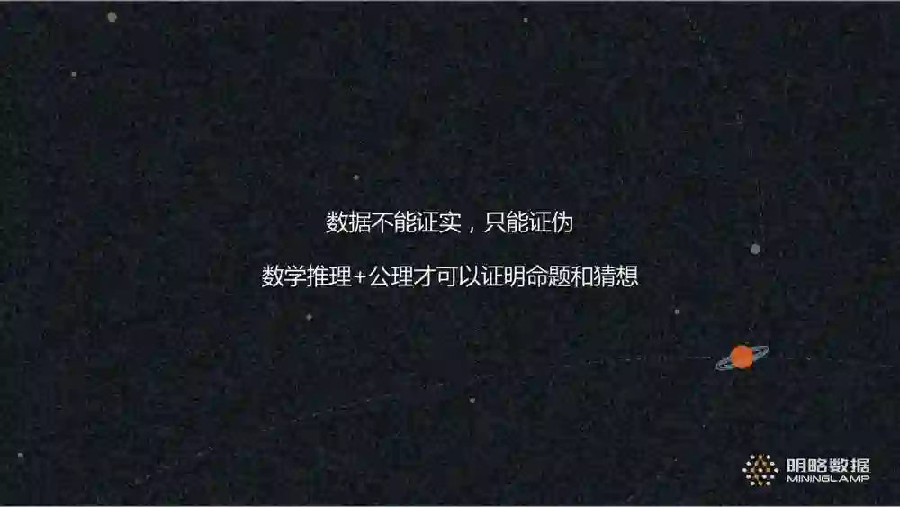 所以这个世界上没有真理,所有的问题归根结底推到最底下的地基都没有人能证明,所以数据是证明不了任何事情的。但数据有一个重要的作用,可以用来证伪。比如爱因斯坦的相对论,让天文学家发现水星在近日点进动的观测值与根据牛顿定律计算的理论值存在一个每世纪43角秒的偏差得到合理解释,同时证明了牛顿经典力学出问题了。它通过一个观察记录的数据证明这个事情是错的。为什么?因为这个世界每天都在产生新的维度,每天都在产生新的变量。