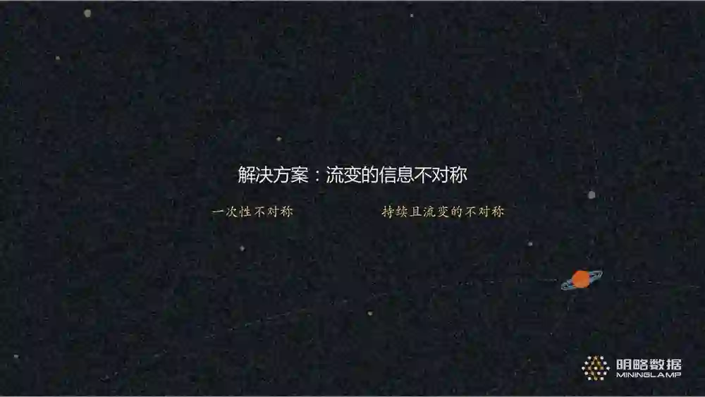 解决方法呢?确实也有很多人用数据赚了大钱。举个例子,如果你把数据真的理解成为一个底层东西的话,实际上可以认为绝大多数商业都是在利用数据赚钱,只是大家赚钱手段不一样。商业是利用信息不对称,信息不对称在我的观念里面分为两种,一种是一次性的信息不对称,一种是持续且流变的信息不对称。