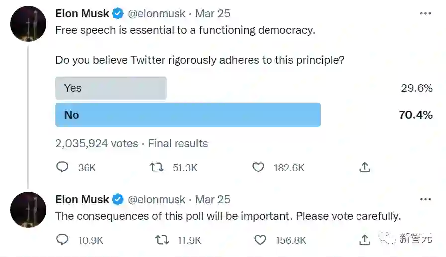 那天,马斯克突然在推特上发起投票:「言论自由是民主社会的基石。你认为推特是否严格遵守了这项原则?」