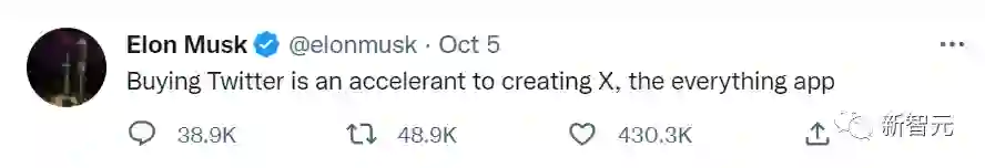 在10月5日的推文中,他表示:「收购推特是为了加速创造X,一个包罗万象的应用。」
