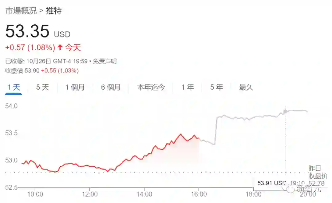 受这些消息影响,Twitter股价应声而涨,周二交易价格为52.95美元,上涨3%,在盘后交易中又涨至每股53.91美元,和马斯克最初的收购报价——每股54.20美元已经非常接近。