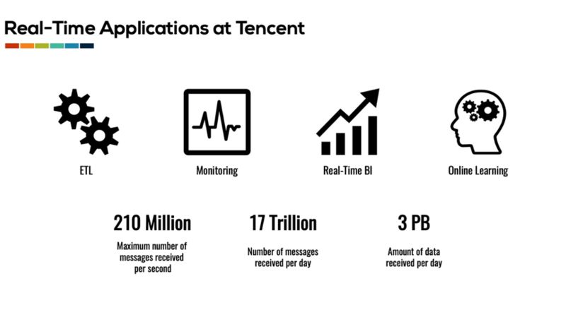 目前腾讯的实时计算的规模已经十分庞大。数据平台部实时计算团队每天需要处理超过了 17 万亿条数据,其中每秒接入的数据峰值达到了 2.1 亿条。