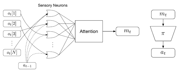 在 NeurIPS 2021 的焦点论文“感觉神经元作为转换器:用于强化学习的置换不变神经网络 (The Sensory Neuron as a Transformer: Permutation-Invariant Neural Networks for Reinforcement Learning)”中,我们研究了置换不变 (permutation invariant) 神经网络代理,它要求每个感觉神经元(从环境中接收感觉输入的感受器)理解其输入信号的含义和背景,而不是明确假设一个固定的含义。实验表明,此类代理能够稳健地应对包含额外冗余或嘈杂信息的观察,以及损坏和不完整的观察。