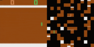 我们还将这种方法应用于高维视觉环境,其中的观察是像素图像流。这一部分研究的是屏幕重排版本的视觉强化学习环境。每个观察帧都被划分为一个图块网格,代理必须像拼拼图一样在重排的顺序下处理图块,确定待采取的行动方案。为演示视觉任务上的方法,我们创建了一个重排版本的 Atari Pong。