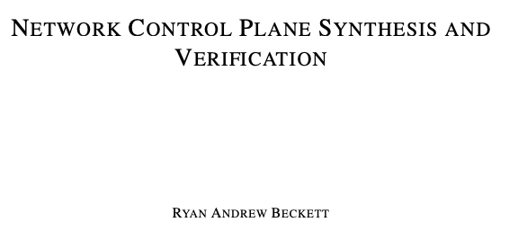 Ryan Beckett在他的论文“Network Control Plane Synthesis and Verification”中开发了新的、通用的、有效的算法来创建和验证网络控制平面配置。