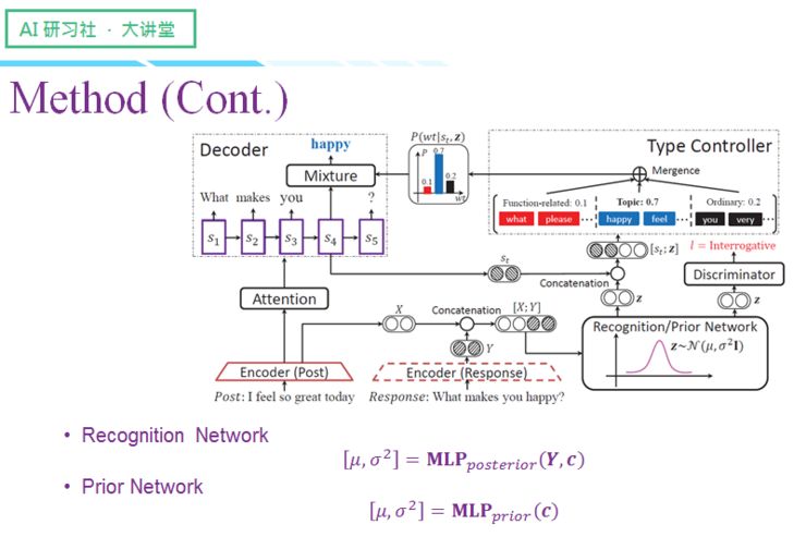 我会从四个关键部件来给大家讲解这个模型,分别是:传统的编码-解码器、识别/先验网络、判别器以及类型控制器。