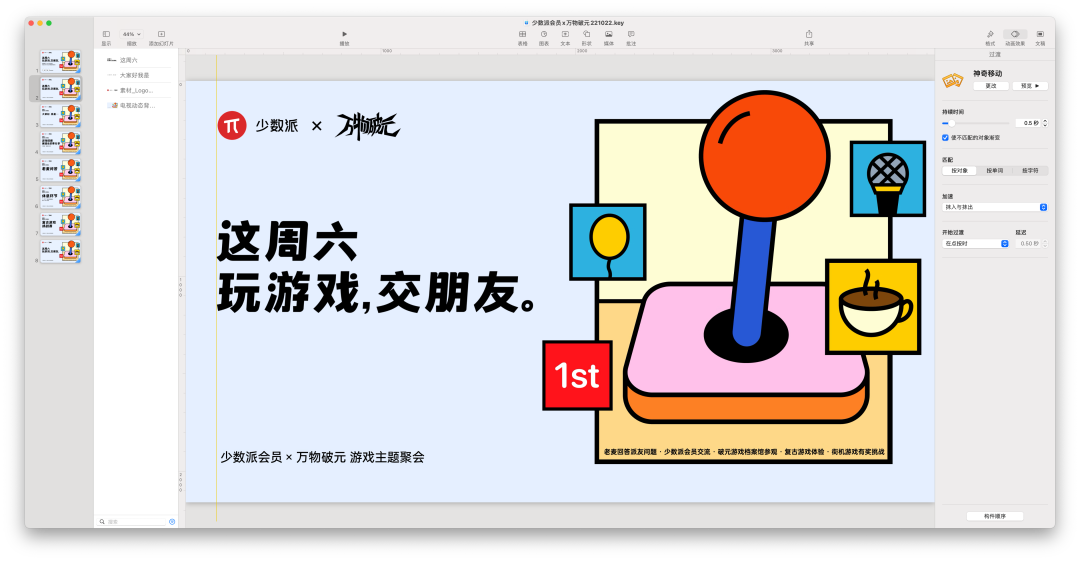 因为他只有两天时间,要完成这次线下活动所需的所有物料,包括线上宣传海报、线下全套展板、主题分享的动态背景……