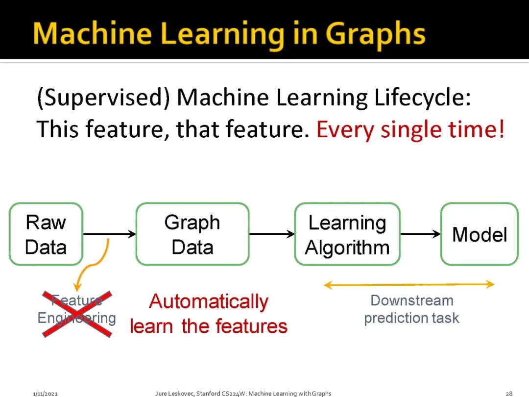 【导读】本文为大家带来了一份斯坦福大学的最新课程CS224W——图机器学习,主讲人是斯坦福大牛Jure Leskovec,他是斯坦福大学计算机学院的副教授,也是图表示学习方法 node2vec 和 GraphSAGE 作者之一。