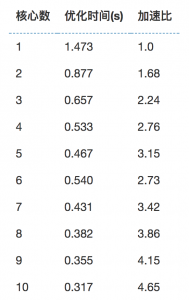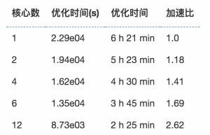 核心数与优化时间的关系:
