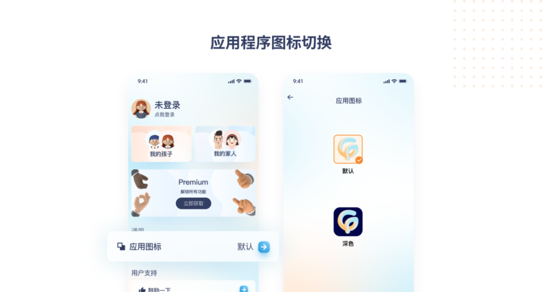 我们相信每一位孩子在家长的心目中,成长都是有不同的定义的,为了尽可能的满足家长心中的这种定义,我们设计了多款 app 的图标,有寓意 Grow 的,有寓意小数苗长大的,也有记录成长的铅笔,家长可以根据自己的喜好进行切换。