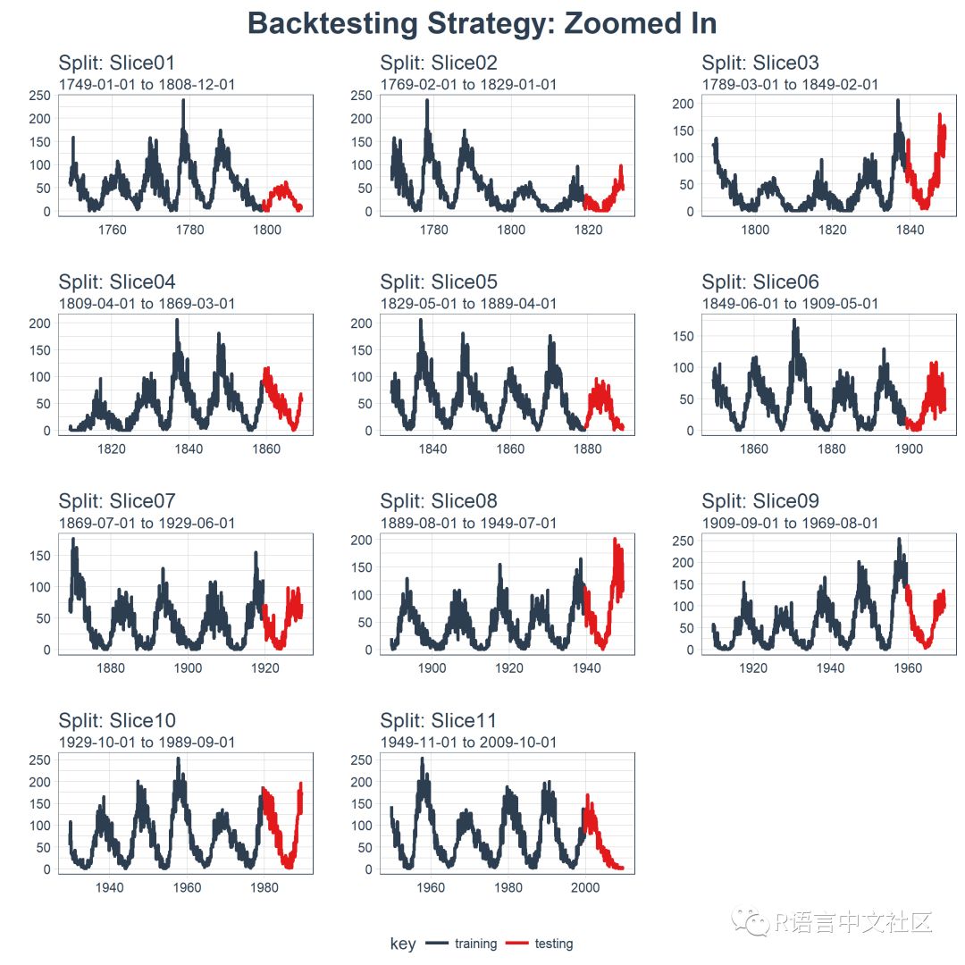 借助 rsample 包在初始抽样上滚动预测,实现时间序列的交叉检验。