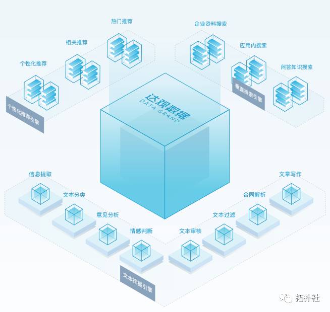 达观数据的打法是,通过文本挖掘技术为传统大型企业、互联网媒体、金融、直播类等客户提供智能推荐引擎、垂直搜索引擎、数据采集挖掘、用户画像等大数据技术服务。