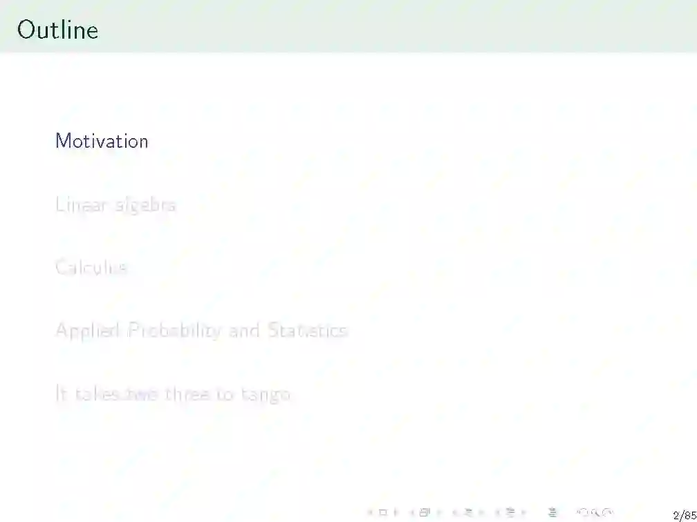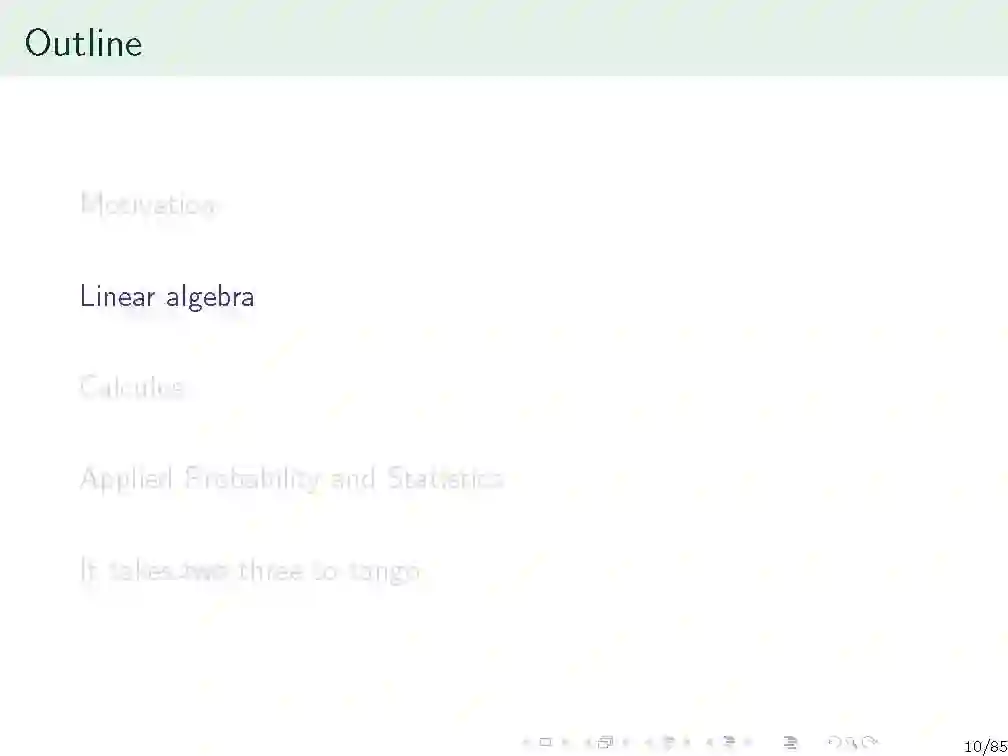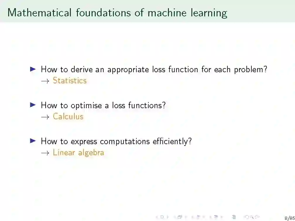 来自牛津大学“Elizaveta Semenova”的报告《机器学习的数学与统计》,91页ppt,值得关注。理解机器学习所需的基本数学工具包括线性代数、解析几何、矩阵分解、向量微积分、优化、概率和统计。本报告包括线性代数、微积分、概率和统计学。