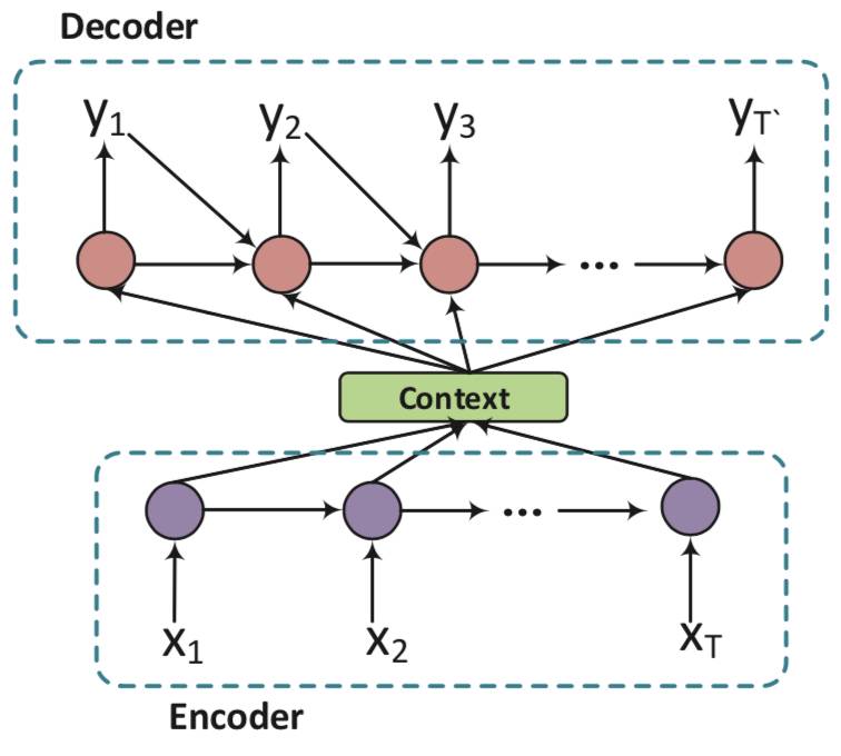 。特别地,序列到序列模型(或seq2seq)是一种编码器-解码器结构。图2展示了这种结构。编码器依次读入