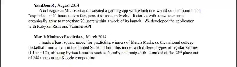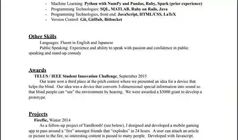 这是我过去申请Google的软件工程师时,使用的简历。它应该只有一页,所以我会说我的简历太长了。仅作参考吧。